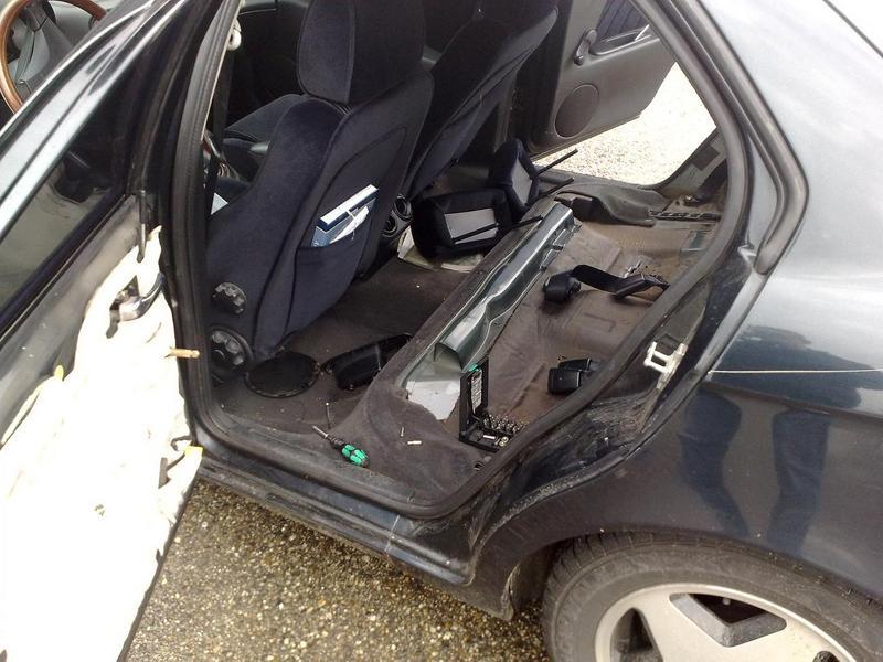 Bekerültek előre is az ülések. A képek minősége nem megfelelő, mert már sötétben kattingattam. A bal hátsó ajtó kárpit és a jobboldali B oszlop kárpitját még meg kell igazítanom. Az ülésfűtés kábelezését majd a zene kábelezésénél oldom meg.
