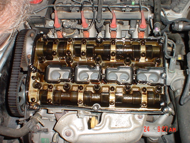 A vezérlés módosítót én szétszedtem, és ha jól okoskodtam, akkor az nem más, mint egy dugattyú, amit az olajnyomás működtet. (benyomódva, spirális alakban, elfordítja a szívószelepek vezérmű tenelyét a rajta lévő szíjtárcsához képest)