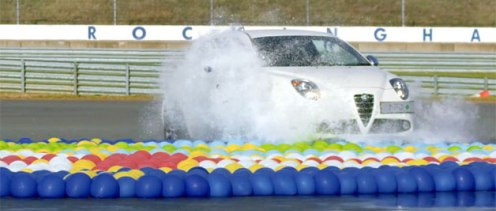 Az Aquabatics névre keresztlet mutatvánnyal Guiness-rekordot akartak dönteni, ennek lényege az volt, hogy egy autóval 2.500 vizeslufit kell kipukkasztani. A lufikból kirakták az aszfalton az Alfa Romeo jelét, és egy hófehér MiTo QV-vel kezdtek bele a lufik megsemmisítésének. Ebben az a Terry Grant volt a segítségükre tesztpilótaként, akinek a nevéhez eddig 19 Guiness rekord fűződik.